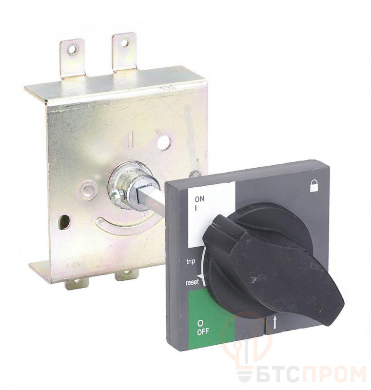 Ручка поворотная на дверь шкафа РП-303; состоит из ручки, удлинительной оси и поворотной рукоятки; предназначена для ручного дистанционного переключения (включения и отключения) автоматического выключателя серии ВА-303 без открытия двери шкафа.