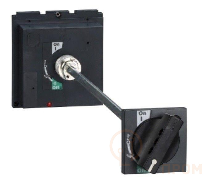 Выносная поворотная рукоятка для автоматических выключателей серии SystemePact CCB DC на ток 630 А; установка – фронтальная; форма основания – квадратная; цвет – черная; макс. длина оси – 500 мм. Поворотная рукоятка имеет эргономичный дизайн и упрощает управление выключателем при включении и отключении; обеспечивает индикацию трех состояний выключателя: отключен (OFF), включен (ON) и отключен автоматически (Trip), препятствует включению выключателя при открытой двери щита.