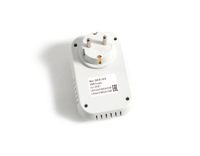 220 В, 16 А. Устройство защиты от импульсных перенапряжений, УЗИП Класс III. Время срабатывания менее 25 нс. В корпусе проходной розетки. Защита от импульсных перенапряжений, защита от всплесков напряжения, вызванных ударами молнии. Автоматическое восстановление после перегрузки, замена предохранителя не требуется. Индикация наличия сети, индикация защиты. Защита от детей.