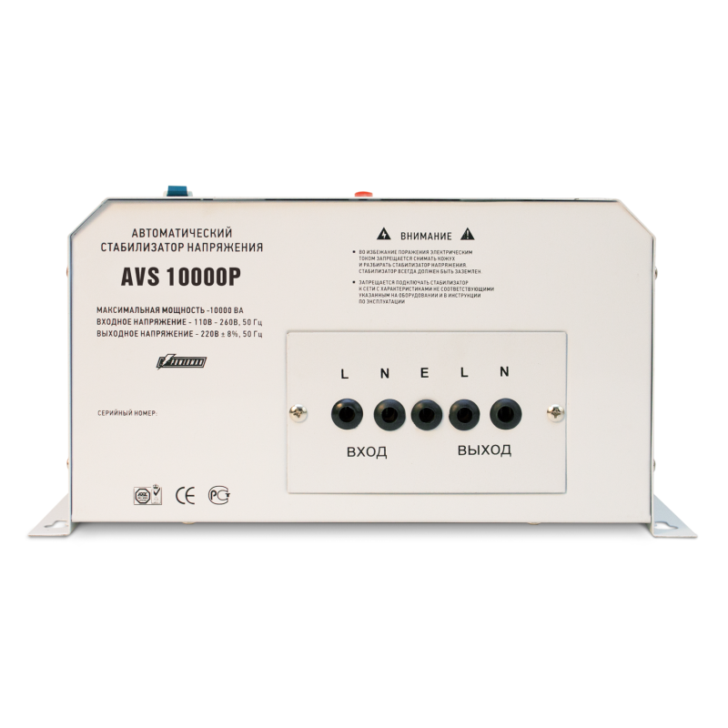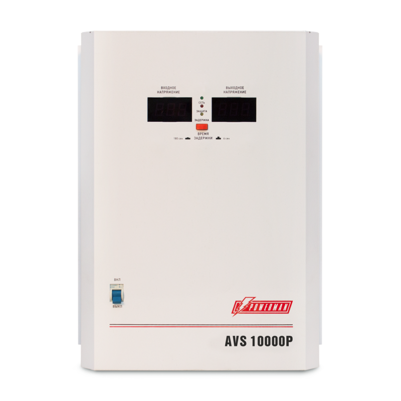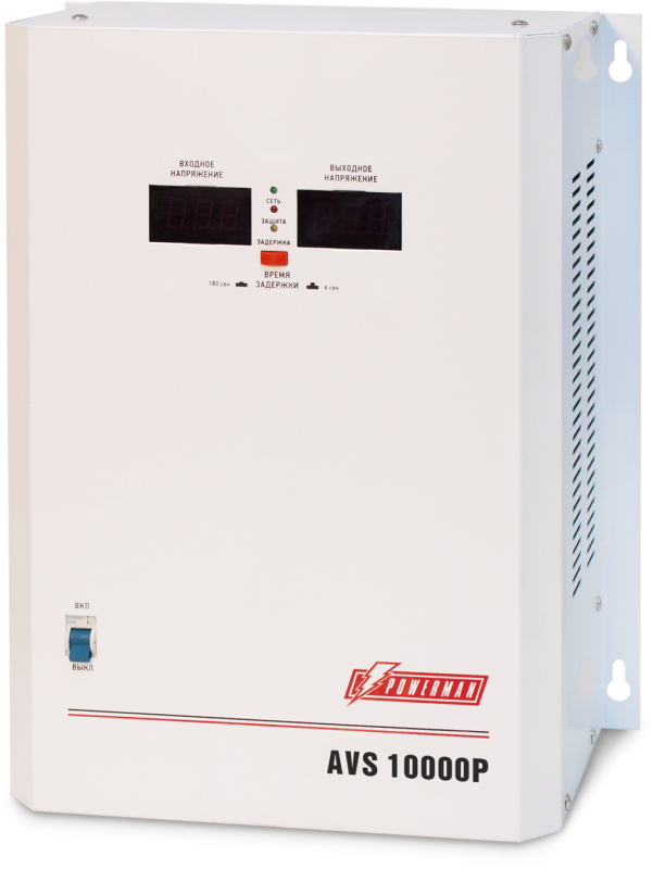 Стабилизатор AVS 10000P ступенчатый регулятор цифровые индикаторы уровней напряжения 10000В.А 110-260В макс. входной ток 63А клеммная колодка IP-20 навесной 380ммх310ммх160мм 16кг POWERMAN 1000425538