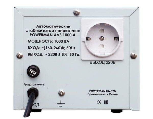 Стабилизатор AVS 1000A ступенчатый регулятор 1000В.А/550Вт 160-260В макс. входной ток 7А 1 евророзетка IP-20 напольный 190ммх150ммх130мм 2.87кг POWERMAN 1000446360