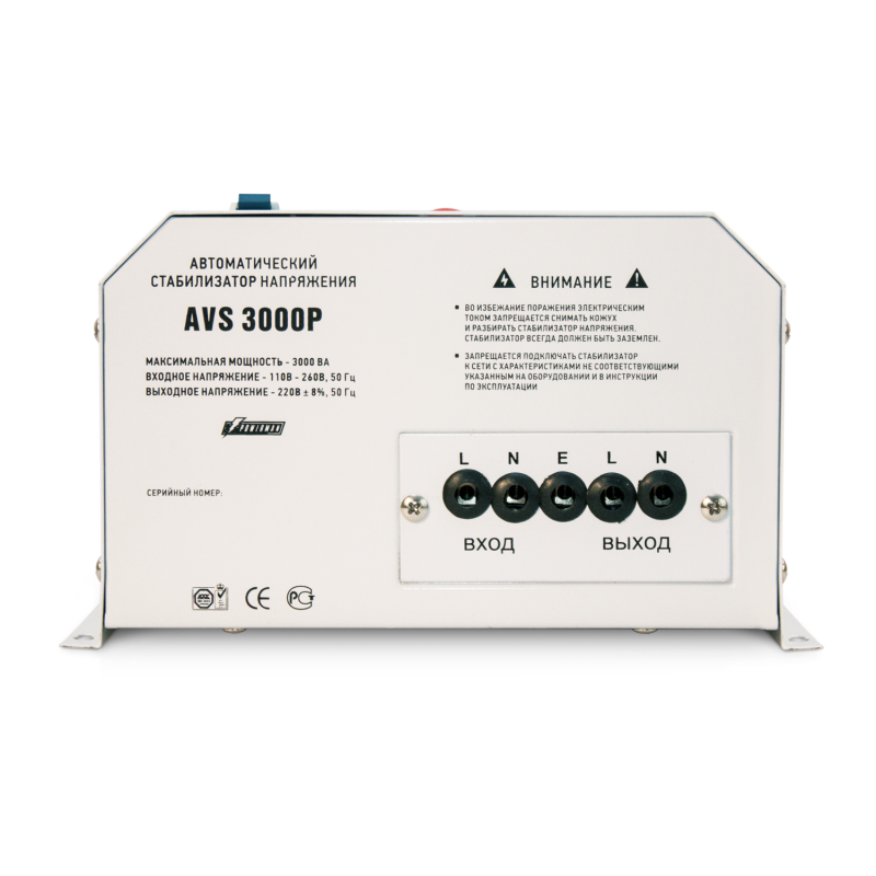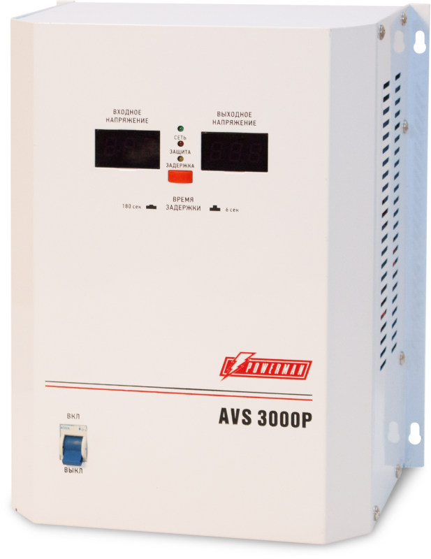Стабилизатор AVS 3000P ступенчатый регулятор цифровые индикаторы уровней напряжения 3000В.А 110-260В макс. входной ток 20А клеммная колодка IP-20 навесной 260ммх220ммх130мм 7.2кг POWERMAN 1000425535