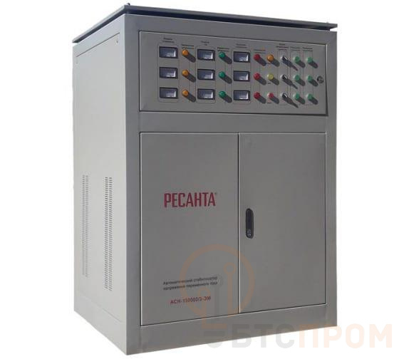 Стабилизатор напряжения АСН-150000/3 — это мощная трехфазная модель электромеханического типа от бренда Ресанта, предназначенная для защиты энергоемкого оборудования. Номинальная мощность прибора составляет 150 кВт, что делает его идеальным решением для промышленных предприятий, мастерских, медицинских центров и крупных коммерческих объектов.