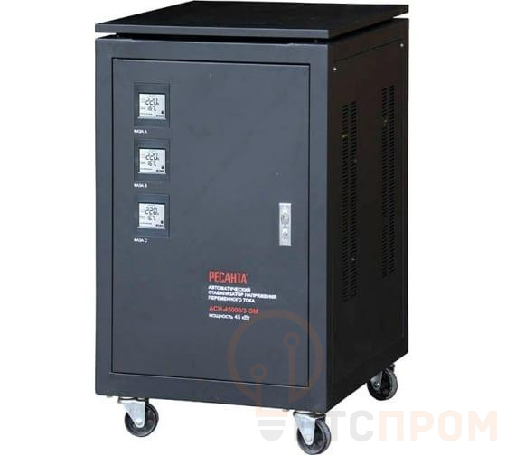 Стабилизатор напряжения Ресанта АСН-45000/3 — это мощное трехфазное решение для защиты промышленного и коммерческого оборудования от перепадов в сети. Суммарная выходная мощность устройства составляет 45 кВт (15 кВт на фазу), что делает его идеальным для обслуживания целых зданий, производственных цехов, мастерских и офисных центров.