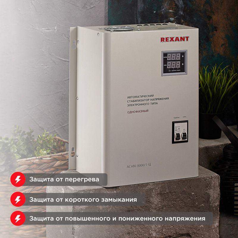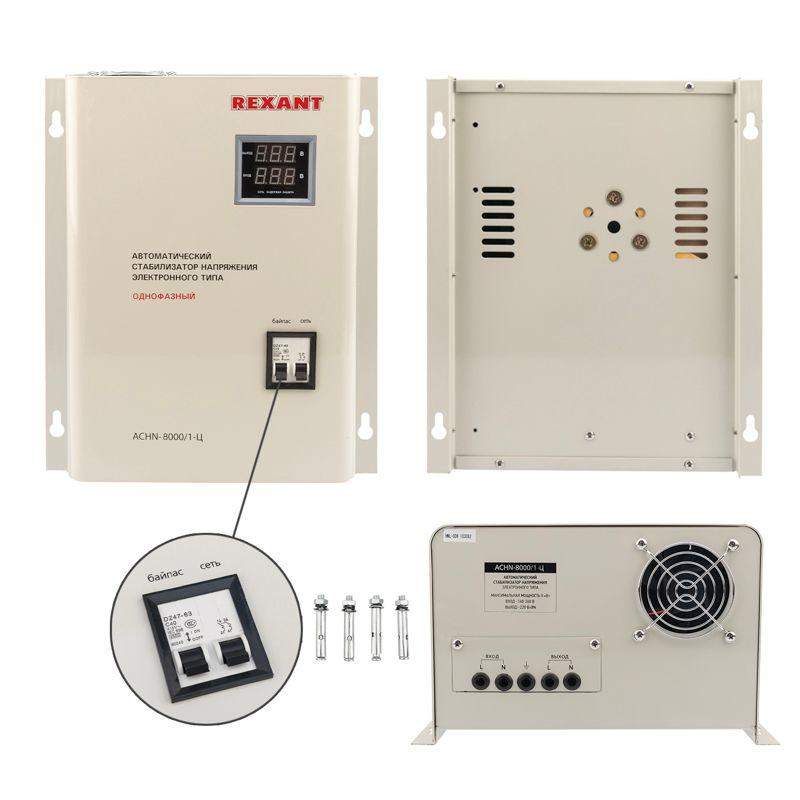 Однофазный стабилизатор переменного напряжения релейного типа марки REXANT используется для защиты различных бытовых и промышленных электроприборов от перепадов напряжения в сети и токов короткого замыкания. В случае отклонения входного напряжения от нормы, устройство стабилизирует его и защищает оборудование от непредвиденных поломок. При превышении предельных значений срабатывает аварийное отключение нагрузки. Устройство имеет широкий рабочий диапазон входного напряжения и поддерживает нужное значение с высокой степенью точности. Оснащен защитой от перегрева и токов короткого замыкания. Актуален для подключения к бытовым приборам, которые работают от сети непрерывно. Текущие показатели отображаются на дисплее. Устройство работает бесшумно, выключается с помощью клавиши. Опция байпас позволяет переключать электропитание нагрузки на входную сеть в обход электронной схемы устройства в период, когда его использование нецелесообразно. Например, при низкой нагрузке на сеть.