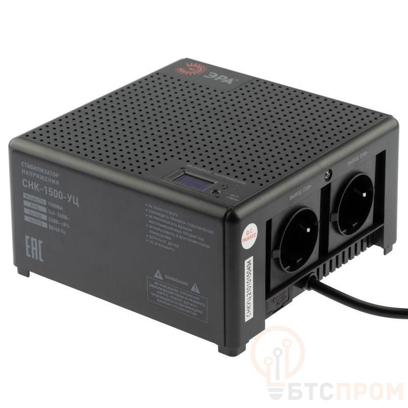 Стабилизатор напряжения компактный однофазный релейный цвет чёрный модели CНК-1500-УЦ. Номинальные характеристики (полная мощность / диапазон входного напряжения): 1500ВА 140-260В . Предназначен для поддержания стабильного однофазного напряжения питания бытовых приборов при отклонениях значений сетевого напряжения. Выбирая стабилизатор, нужно знать, какое электрооборудование будет к нему подключено: один прибор, группу приборов (наиболее чувствительных к перепадам напряжения в сети) либо вся домашняя (офисная) техника. Затем необходимо рассчитать суммарную мощность защищаемых электропотребителей. Основное условие выбора мощности стабилизатора напряжения - суммарная мощность подключаемой к нему нагрузки не должна превышать полной мощности самого стабилизатора (в противном случае автоматика стабилизатора будет их просто отключать). Точные значения мощности можно узнать из паспортных данных Вашего конкретного потребителя. Стабилизатор подбирается с запасом в 25-30% к его полной мощности.