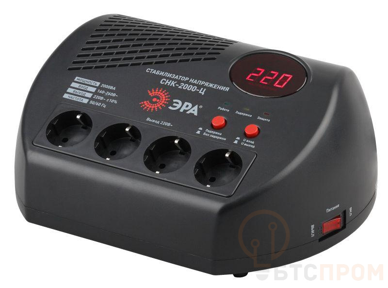 Стабилизатор напряжения компактный однофазный релейный цвет чёрный модели СНК-2000-Ц. Номинальные характеристики (полная мощность / диапазон входного напряжения): 2000ВА 160-260В . Предназначен для поддержания стабильного однофазного напряжения питания бытовых приборов при отклонениях значений сетевого напряжения. Выбирая стабилизатор, нужно знать, какое электрооборудование будет к нему подключено: один прибор, группу приборов (наиболее чувствительных к перепадам напряжения в сети) либо вся домашняя (офисная) техника. Затем необходимо рассчитать суммарную мощность защищаемых электропотребителей. Основное условие выбора мощности стабилизатора напряжения - суммарная мощность подключаемой к нему нагрузки не должна превышать полной мощности самого стабилизатора (в противном случае автоматика стабилизатора будет их просто отключать). Точные значения мощности можно узнать из паспортных данных Вашего конкретного потребителя. Стабилизатор подбирается с запасом в 25-30% к его полной мощности.