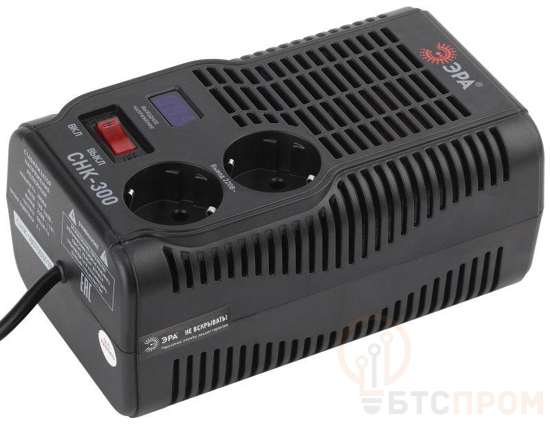 Стабилизатор напряжения компактный однофазный релейный цвет чёрный модели СНК-300. Номинальные характеристики (полная мощность / диапазон входного напряжения): 300ВА 160-260В . Предназначен для поддержания стабильного однофазного напряжения питания бытовых приборов при отклонениях значений сетевого напряжения. Выбирая стабилизатор, нужно знать, какое электрооборудование будет к нему подключено: один прибор, группу приборов (наиболее чувствительных к перепадам напряжения в сети) либо вся домашняя (офисная) техника. Затем необходимо рассчитать суммарную мощность защищаемых электропотребителей. Основное условие выбора мощности стабилизатора напряжения - суммарная мощность подключаемой к нему нагрузки не должна превышать полной мощности самого стабилизатора (в противном случае автоматика стабилизатора будет их просто отключать). Точные значения мощности можно узнать из паспортных данных Вашего конкретного потребителя. Стабилизатор подбирается с запасом в 25-30% к его полной мощности.