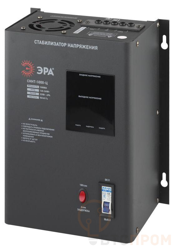 Стабилизатор напряжения настенный однофазный релейный цвет чёрный модели СННТ-5000-Ц. Номинальные характеристики (полная мощность / диапазон входного напряжения): 5000ВА 140-260В . Предназначен для поддержания стабильного однофазного напряжения питания бытовых приборов при отклонениях значений сетевого напряжения. Выбирая стабилизатор, нужно знать, какое электрооборудование будет к нему подключено: один прибор, группу приборов (наиболее чувствительных к перепадам напряжения в сети) либо вся домашняя (офисная) техника. Затем необходимо рассчитать суммарную мощность защищаемых электропотребителей. Основное условие выбора мощности стабилизатора напряжения - суммарная мощность подключаемой к нему нагрузки не должна превышать полной мощности самого стабилизатора (в противном случае автоматика стабилизатора будет их просто отключать). Точные значения мощности можно узнать из паспортных данных Вашего конкретного потребителя. Стабилизатор подбирается с запасом в 25-30% к его полной мощности.