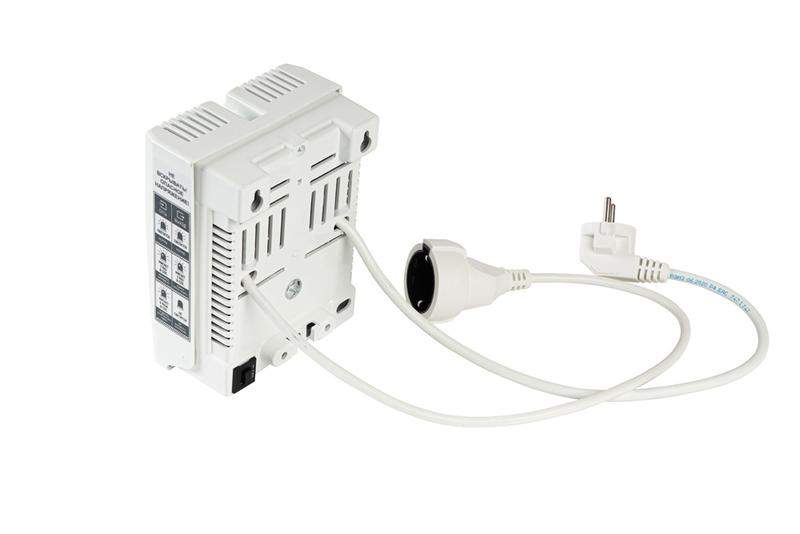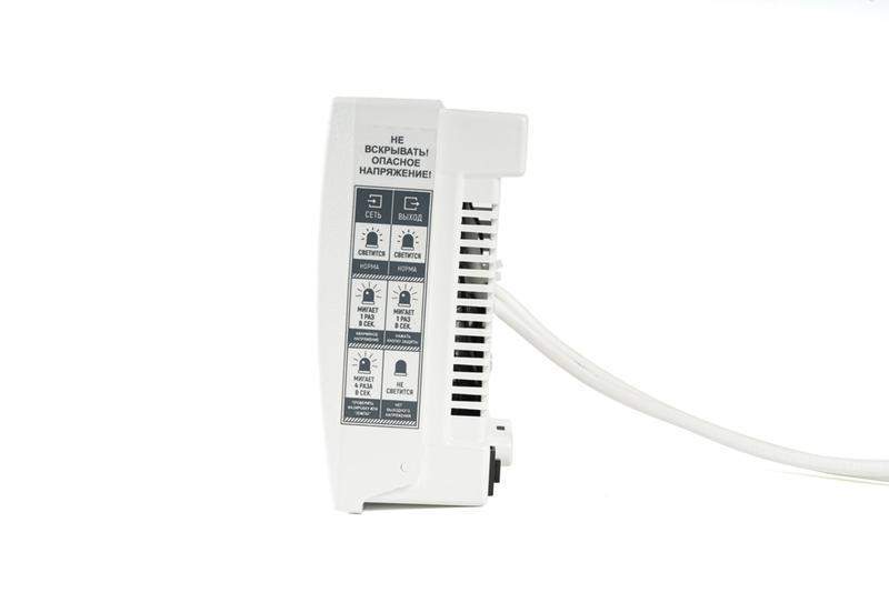 Стабилизатор напряжения для газового котла. Мощность нагрузки — 555 ВА, диапазон сети — 145...260 В, полная мощность во всём диапазоне сети, стабилизация напряжения вольтдобавочного типа, микропроцессорное управление, защитное отключение при авариях в сети с автоматическим восстановлением, индикация аварийных ситуаций. Проверка фазировки и потенциала на шине "Земля". Индикация неверной фазировки и наличия напряжения на "Земле". Индикация ошибок только при включении стабилизатора в течение минуты, если ошибка не устранена, индикация переходит в спящий режим до следующего включения. Полная самодиагностика всех узлов и режимов работы стабилизатора. Индикация устранимых неисправностей — срабатывание защиты выхода. Малогабаритный пластиковый корпус настенного исполнения. Быстрое и простое подключение (не сложнее удлинителя). Аналог «China ХХХ-1000». Застраховано «Ингосстрах» 3 000 000 руб. Рекомендован ведущими мировыми производителями для настенных котлов. Лидер на рынке отопительного оборудования.