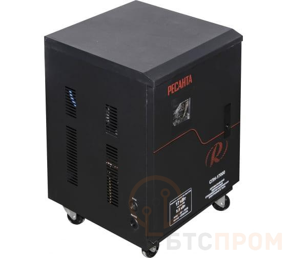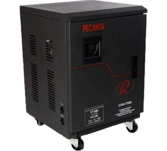 Стабилизатор напряжения Ресанта СПН-17000 — это надежное однофазное устройство для защиты бытовой и профессиональной техники от скачков и пониженного напряжения в сети. Его номинальная мощность составляет 17 кВт (кВА), что делает его идеальным решением для всего загородного дома, коттеджа или небольшого производственного участка.
