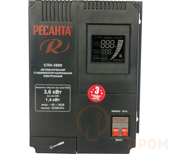 –Стабилизатор СПН-3600 1ф 3.6кВт 90-260В IP20 пониж. напр. Ресанта 63/6/25