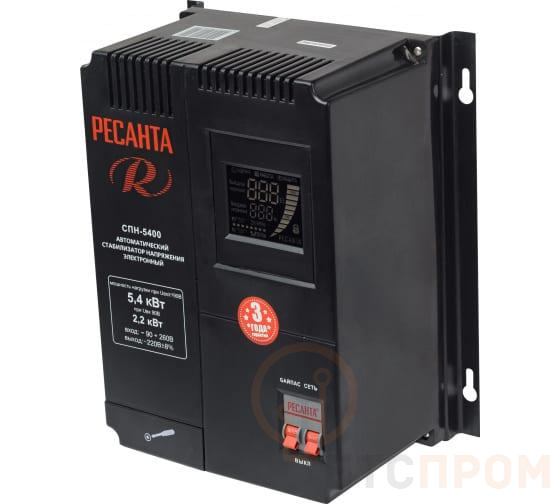 –Стабилизатор СПН-5400 1ф 5.4кВт 90-260В IP20 пониж. напр. Ресанта 63/6/26