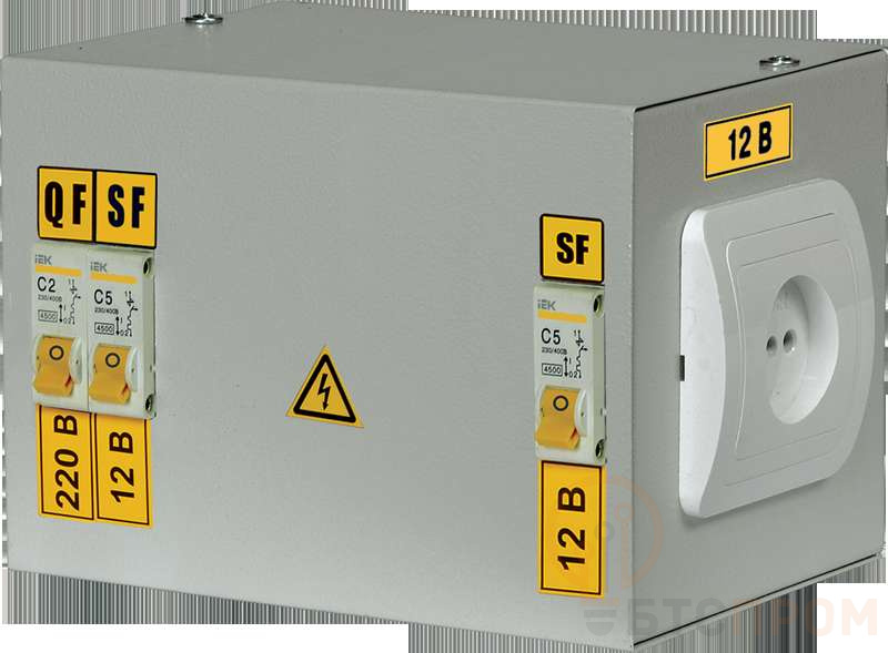 Предназначены для питания местного или ремонтного освещения, а также для подключения переносных светильников и инструмента. Ящики ЯТП имеют разборный металлический корпус, внутри которого установлены: - однофазный понижающий трансформатор ОСО-0,25 мощностью 250 Вт; - автоматические выключатели ВА47-29; - штепсельная розетка.