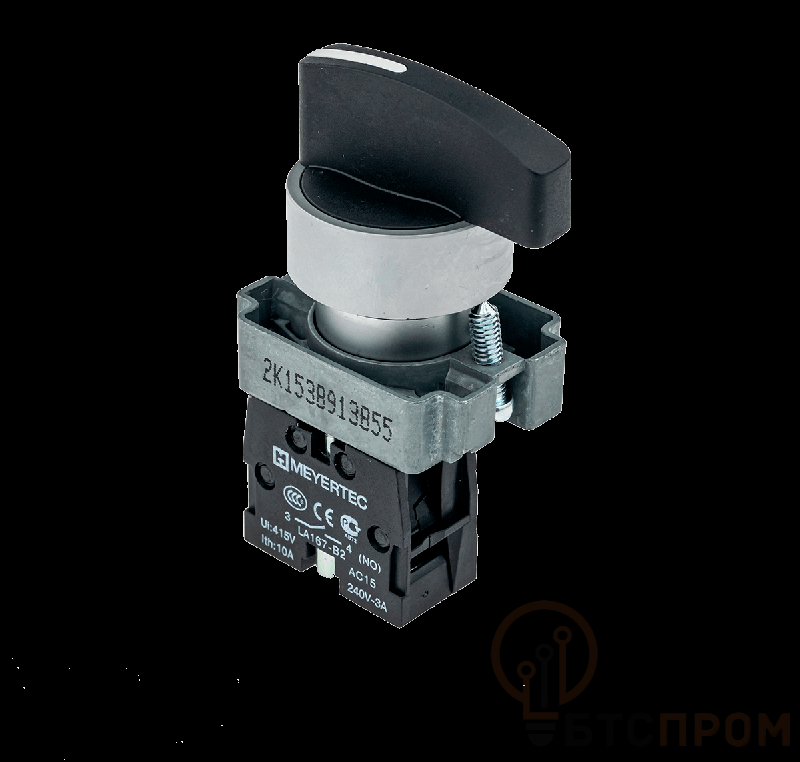 Переключатель MTB2-BJZ112 от компании ОВЕН — это надежный двухпозиционный прибор с длинной черной ручкой, предназначенный для коммутации электрических цепей управления. Ключевая характеристика — контактная группа 1NO (один нормально разомкнутый контакт) с фиксированным положением, что обеспечивает стабильность работы в выбранном режиме.