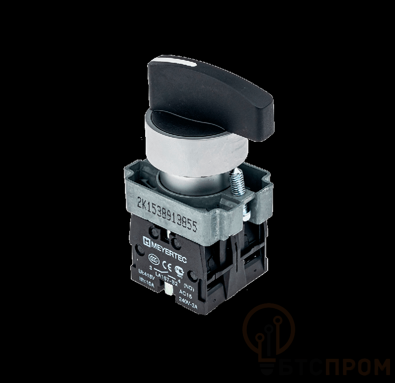 Переключатель MTB2-BJZ133 от компании ОВЕН — это надежный трехпозиционный аппарат с длинной черной ручкой, предназначенный для коммутации электрических цепей управления. Модель обладает двумя замыкающими контактами (2NO) и фиксированным положением рукоятки, что обеспечивает четкое и надежное переключение режимов работы оборудования. Корпус устройства выполнен из металла, что гарантирует высокую механическую прочность и устойчивость к внешним воздействиям.