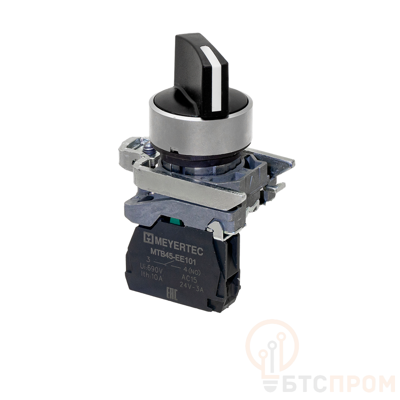 Переключатель на 2 положения с фиксацией MTB4-BD21 от компании ОВЕН — это надежный и долговечный коммутационный аппарат, предназначенный для ручного управления электрическими цепями. Модель оснащена короткой рукояткой черного цвета и имеет два четко фиксированных положения, что обеспечивает удобство и безопасность эксплуатации.