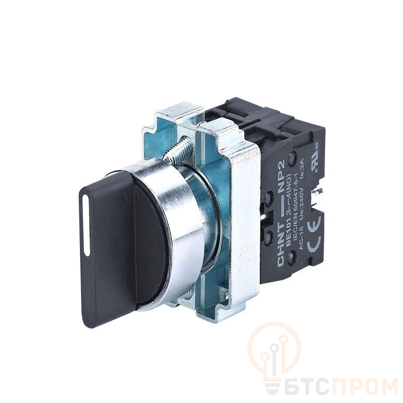 Переключатель NP2-BD35 от бренда CHINT — это надежный аппарат коммутации на 2 направления с тремя фиксированными положениями. Модель обладает компактной конструкцией и контактами типа 1НО+1НЗ (один нормально разомкнутый и один нормально замкнутый), что обеспечивает гибкость в управлении цепями. Устройство рассчитано на номинальное напряжение до 690 В и имеет степень защиты IP40, что защищает его от попадания твердых частиц размером более 1 мм.