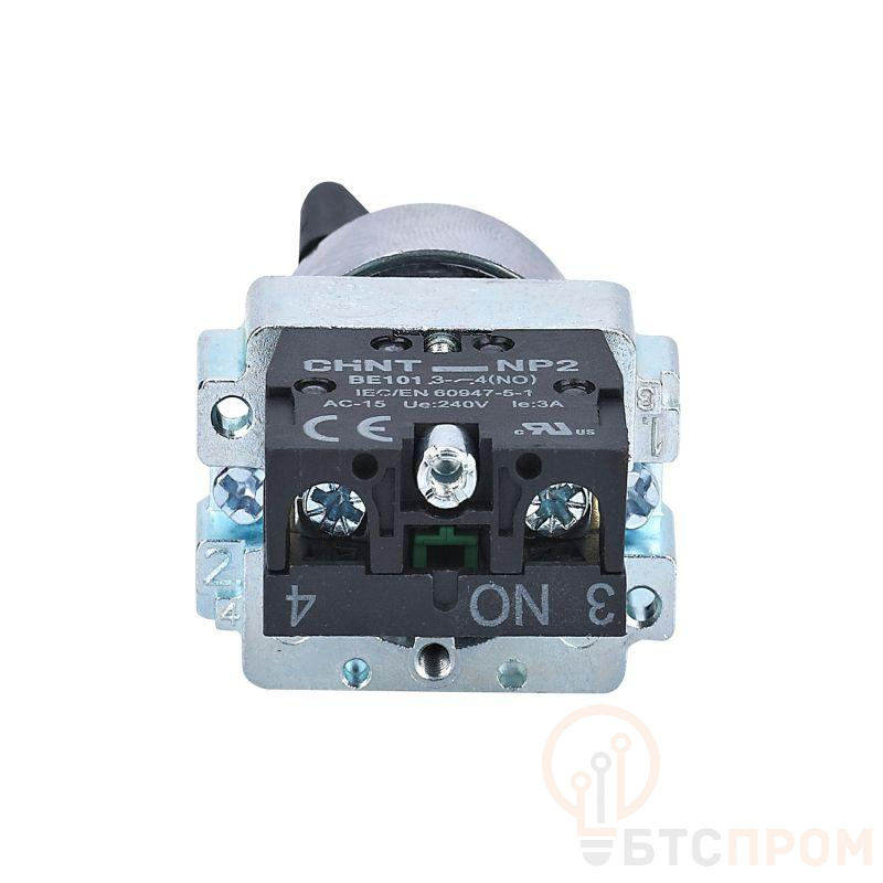 Переключатель NP2-BD43 от бренда CHINT — это надежный аппарат управления, предназначенный для коммутации электрических цепей управления и сигнализации. Модель имеет 2 фиксированных положения с обязательным возвратом в исходное состояние, оснащена одной группой контактов типа 1НЗ (один нормально замкнутый контакт).
