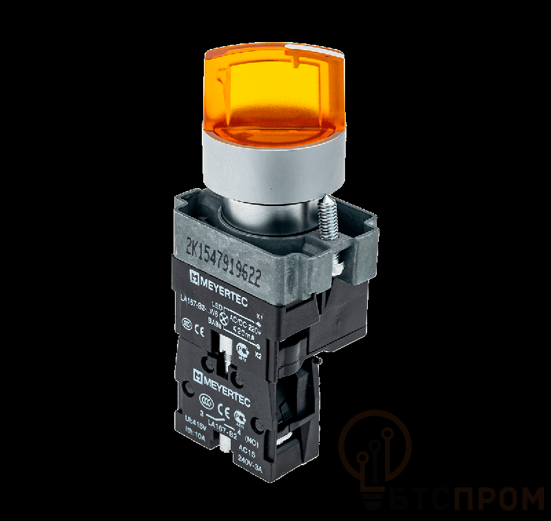 Переключатель MTB2-BK3561 от компании ОВЕН — это надежный трехпозиционный переключатель с фиксированными положениями и желтой светодиодной подсветкой. Устройство рассчитано на рабочее напряжение 24В переменного или постоянного тока. Конструкция имеет одну нормально разомкнутую (1NO) группу контактов и выполнена в металлическом корпусе, что обеспечивает высокую прочность и долговечность.