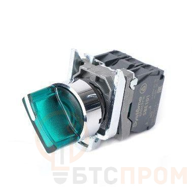 Переключатель SB4 с подсветкойв сборе 22мм 2поз. с фиксацией металл 230В AC 1НО+1НЗ зел. SE SB4BK123M5