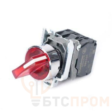 Переключатель SB4 с подсветкойв сборе 22мм 3поз. с фиксацией металл 230В AC 1НО+1НЗ красн. SE SB4BK134M5