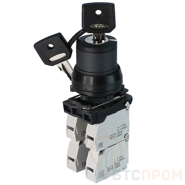 Ключевой особенностью является замок на три фиксированных положения: -90°, 0° и +90°. Ключ блокируется и может быть извлечен только в положении «включено», что обеспечивает повышенный уровень безопасности и предотвращает несанкционированные операции. Степень защиты корпуса IP40 гарантирует защиту от попадания твердых предметов размером более 1 мм.