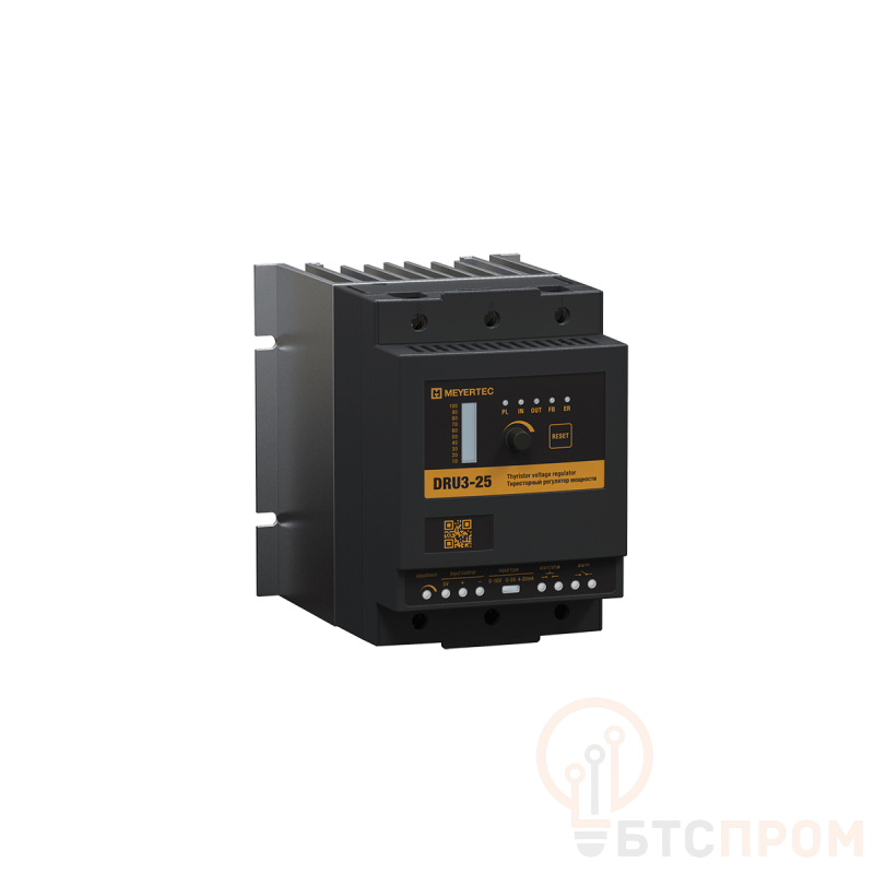 Ключевые характеристики включают компактный модульный корпус, простоту монтажа на DIN-рейку, цифровую индикацию состояния и надежную защиту от перегрузок. Благодаря широкому диапазону входных сигналов управления (0-10В, 0-20мА и др.), регулятор легко интегрируется в системы автоматизации.
