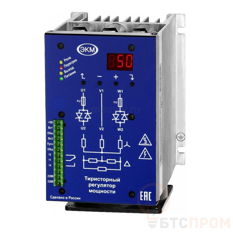 Прибор обеспечивает плавное регулирование напряжения на нагрузке до 80 А. Ключевой особенностью является встроенный интерфейс RS-485 с поддержкой протокола Modbus, что позволяет легко интегрировать его в системы АСУ ТП для дистанционного контроля и управления. Устройство оснащено цифровым индикатором и отличается высокой надежностью.