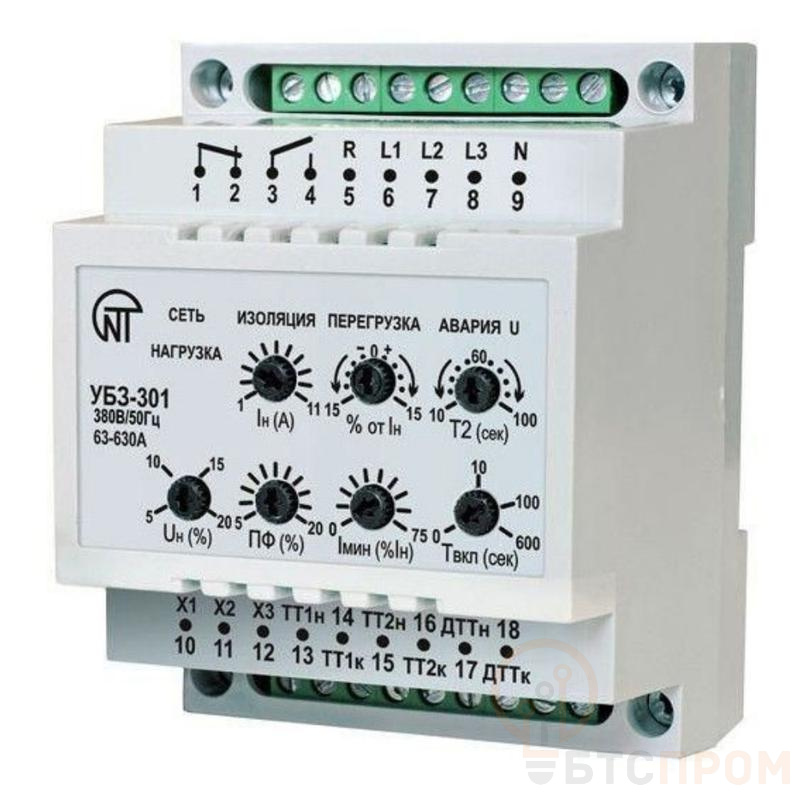 Блок защиты УБЗ-301 63-630А380В ном.ток двигателя-63-630А (трансформаторы тока (Т/Т) в компл.) d диф.трансформатора 100мм НовАтек-Электро 3425663301-100