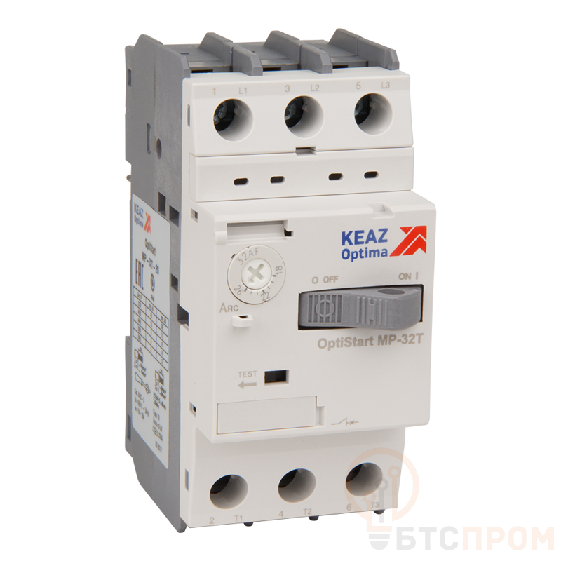 Автоматический 3 полюсный выключатель защиты двигателя 10 класса теплового расцепителя переменного тока с предельной коммутационной способностью при переменном токе кА на номинальный ток 0.63 А с уставкой расцепителей токов короткого замыкания 8,2А и диапазоном регулировки теплового расцепителя 0,4-0,63 А.