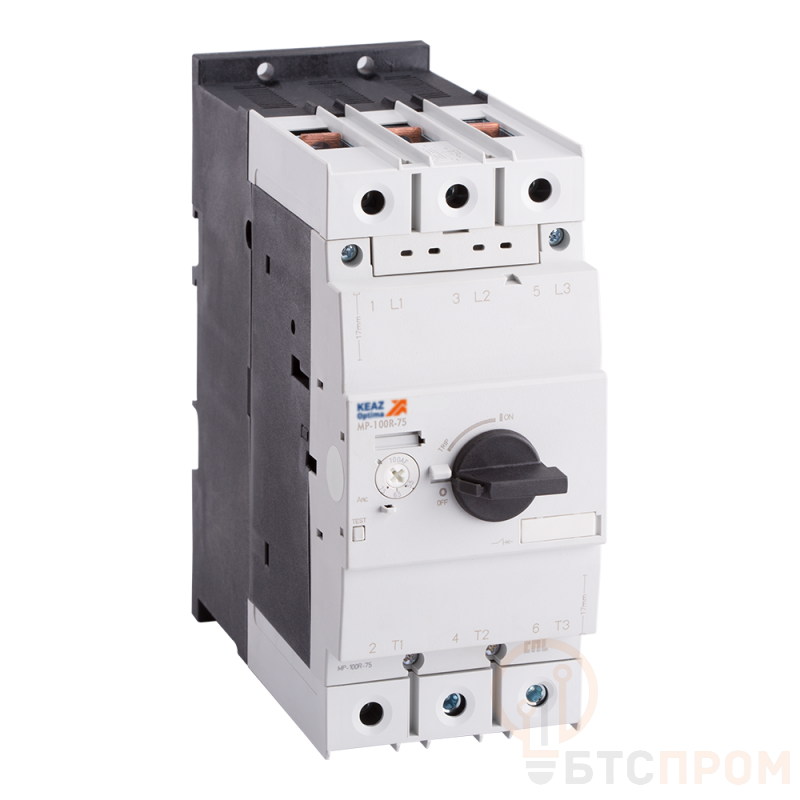 Автоматический 3 полюсный выключатель защиты двигателя 10 класса теплового расцепителя переменного тока с предельной коммутационной способностью при переменном токе кА на номинальный ток 100 А с уставкой расцепителей токов короткого замыкания 1300А и диапазоном регулировки теплового расцепителя 80-100 А.