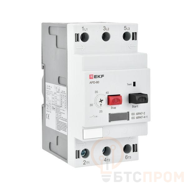 Автоматические выключатели пуска двигателя серии АПД-80 EKF PROxima с термомагнитным расцепителем специально предназначены для коммутаций цепей переменного тока напряжением до 690 В частотой 50/60 Гц, а также для управления и защиты трехфазных асинхронных двигателей от перегрузки, обрыва фазы, короткого замыкания.
