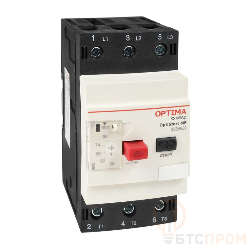 Автоматический трёхполюсный выключатель защиты двигателя 10А класса теплового расцепителя переменного тока с регулируемым диапазоном 56,0-80,0A, на номинальный ток 80А.