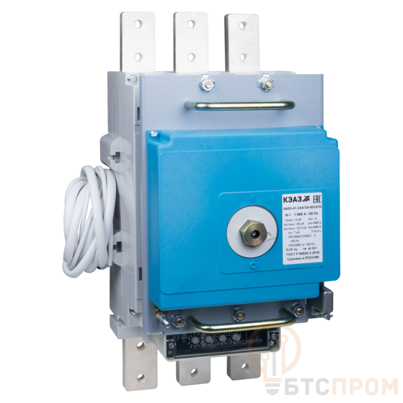 Выключатель автоматический 3п 1000А 135кА ВА53-41-341830 УХЛ3 690В AC НР=400В AC ПЭ230AC КЭАЗ 141318