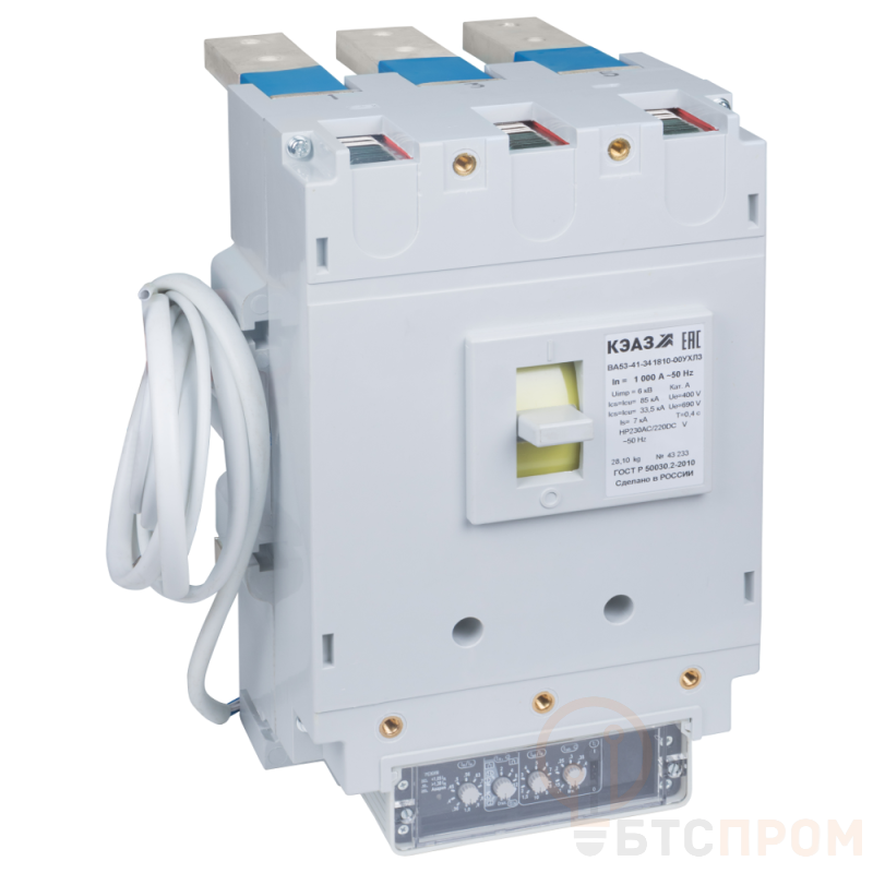 Выключатель автоматический 3п 1000А 135кА ВА53-41-344710 УХЛ3 690В НР=230В AC/220В DC задн. присоед. КЭАЗ 220480