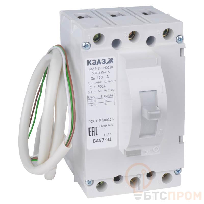 Выключатель автоматический 100А 400Im ВА57-31-341810 ОМ4 РЕГ 690В AC НР=127В AC КЭАЗ 255117 фото в каталоге от BTSprom.by