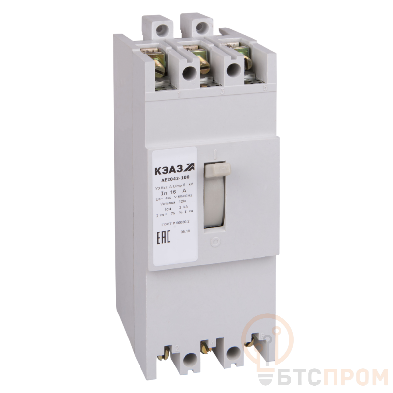 Силовой 3 полюсный автоматический выключатель переменного тока в литом корпусе на номинальный ток 10 А.