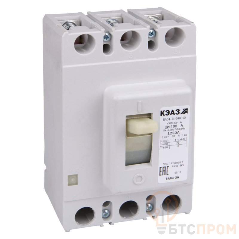 Выключатель автоматический 125А 1500Im ВА04-36-340010 УХЛ3 690В AC КЭАЗ 107543 фото в каталоге от BTSprom.by