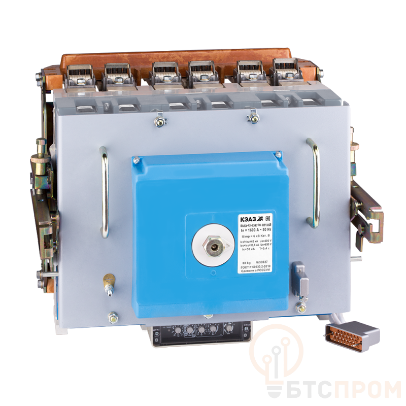 Силовой 3 полюсный автоматический выключатель переменного тока в литом корпусе на номинальный ток 1600 А.