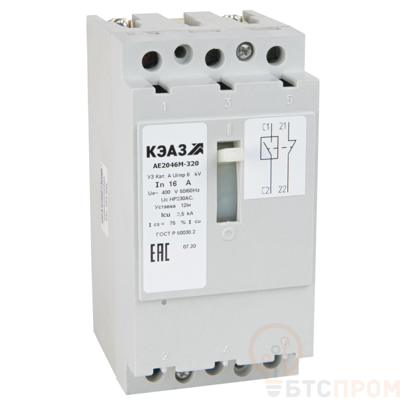 Силовой 3 полюсный автоматический выключатель переменного тока в литом корпусе на номинальный ток 2.5 А.