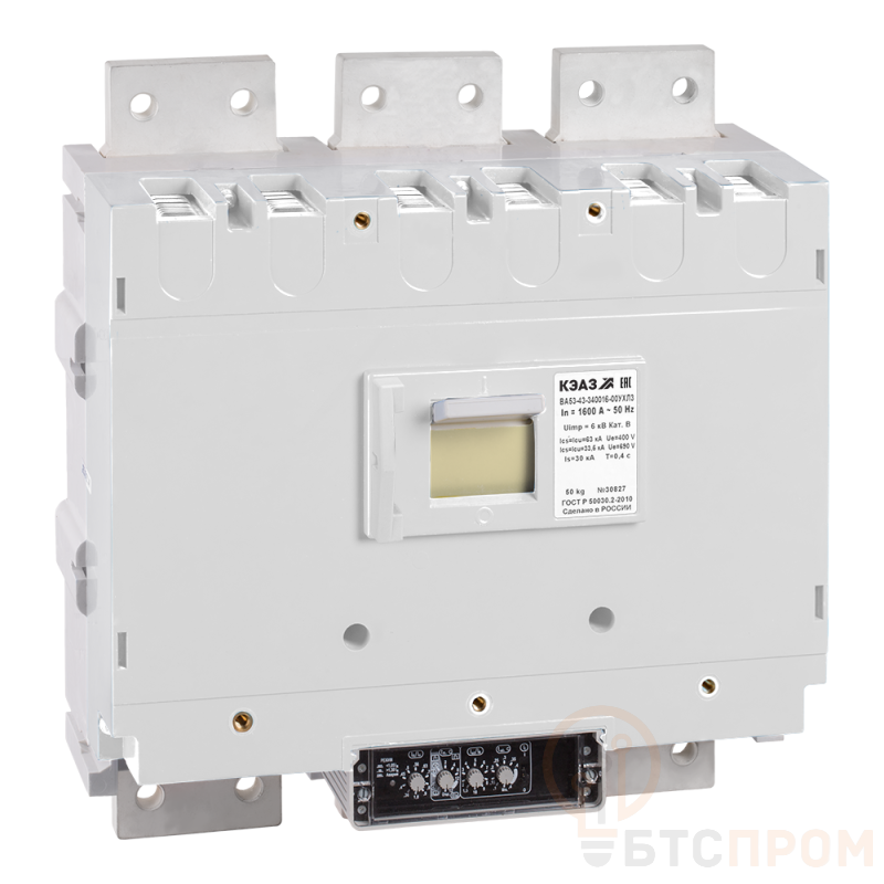 Силовой 3 полюсный автоматический выключатель переменного тока в литом корпусе на номинальный ток 2000 А.