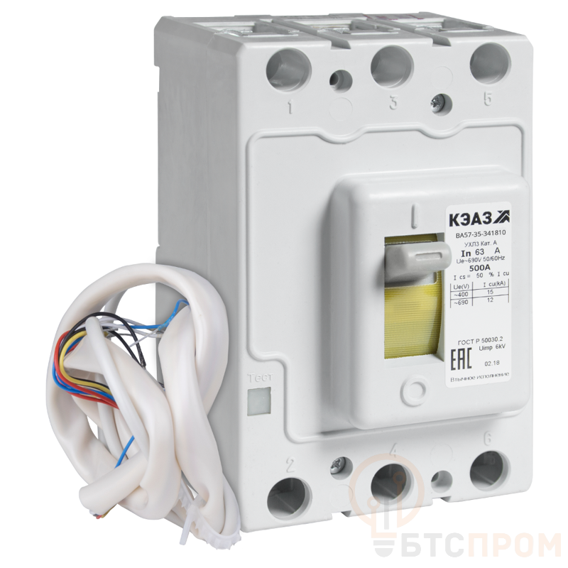 Силовой 3 полюсный автоматический выключатель переменного тока в литом корпусе на номинальный ток 20 А.