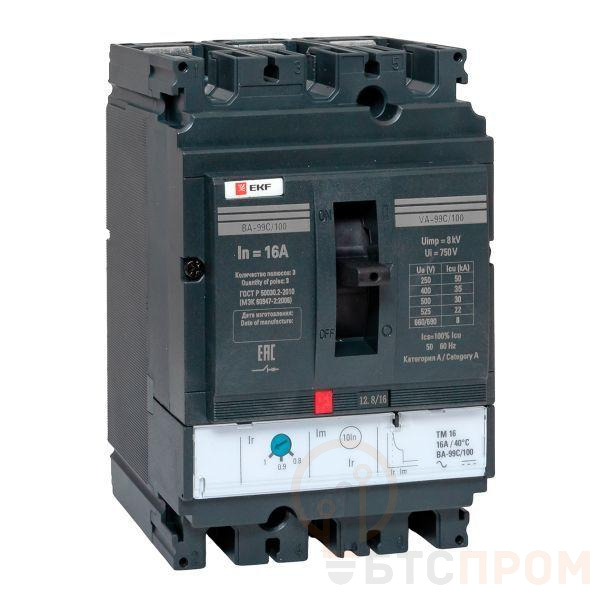 Выключатель ВА-99С выполнен в виде моноблока и состоит из основания и крышки с фальш-панелью, в которой имеется окно для рукоятки управления и толкатель кнопки «Тест» – для проверки механизма отключения выключателя.Основание выполнено из термостойкой пластмассы, не поддерживающей горение и являющейся несущей конструкцией для присоединительных зажимов, блок ротоактивных контактов с двумя дугогасительными камерами представляет собой жесткую сборку в отдельном корпусе, механизма управления, блока защиты от сверхтоков и перегрузки (расцепителя). Крышка закрывает все подвижные элементы механизма управления и внутренние токоведущие части.