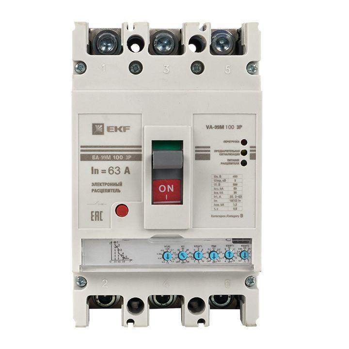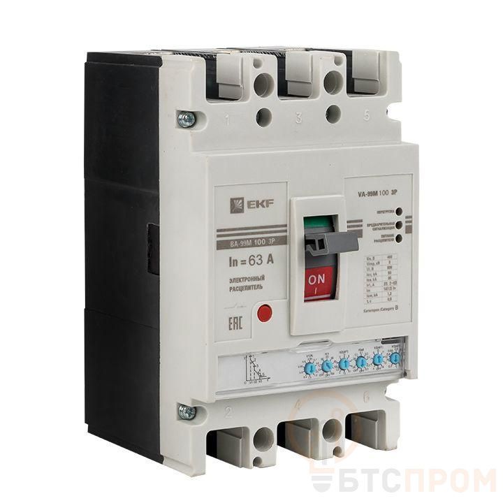 Выключатель ВА-99М выполнен в виде моноблока и состоит из основания и крышки с фальшпанелью, в которой имеется окно для рукоятки управления и толкатель кнопки «Тест» - проверки механизма отключения выключателя. Основание выполнено из термостойкой пластмассы, не поддерживающей горение и являющейся несущей конструкцией для присоединительных зажимов, неподвижных и подвижных контактов с системой дугогашения, механизма управления, блока защиты от сверхтоков. Крышка закрывает все подвижные элементы механизма управления и внутренние токоведущие части.