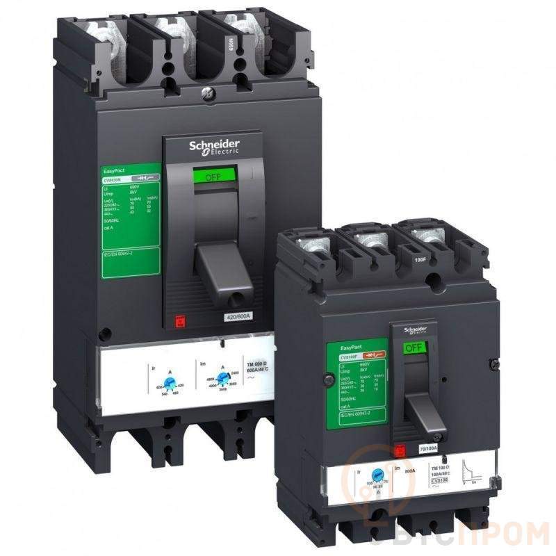 Автоматический выключатель EasyPact CVS100N Schneider Electric, исполнение – 3P3D; номинальный ток 100 А; Icu = 50 кА при 380/415 В; Ics = 100% Icu; с термомагнитным расцепителем TM-D; ШхВхГ – 90x102x158 мм; исполнение – стационарный; монтаж - на плате. Серия выключателей EasyPact CVS предназначены для применения на объектах гражданского и промышленного назначения. Выключатели EasyPact CVS для своего ценового позиционирования обеспечивают высокий уровень эффективности и функциональности.