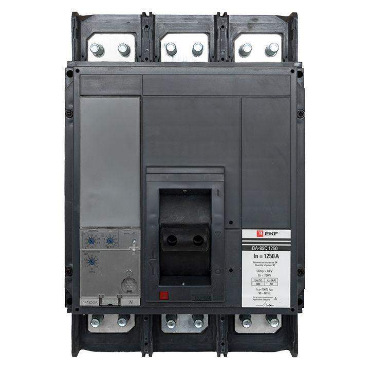 Выключатель ВА-99С выполнен в виде моноблока и состоит из основания и крышки с фальш-панелью, в которой имеется окно для рукоятки управления и толкатель кнопки «Тест» – для проверки механизма отключения выключателя.Основание выполнено из термостойкой пластмассы, не поддерживающей горение и являющейся несущей конструкцией для присоединительных зажимов, блок ротоактивных контактов с двумя дугогасительными камерами представляет собой жесткую сборку в отдельном корпусе, механизма управления, блока защиты от сверхтоков и перегрузки (расцепителя). Крышка закрывает все подвижные элементы механизма управления и внутренние токоведущие части.