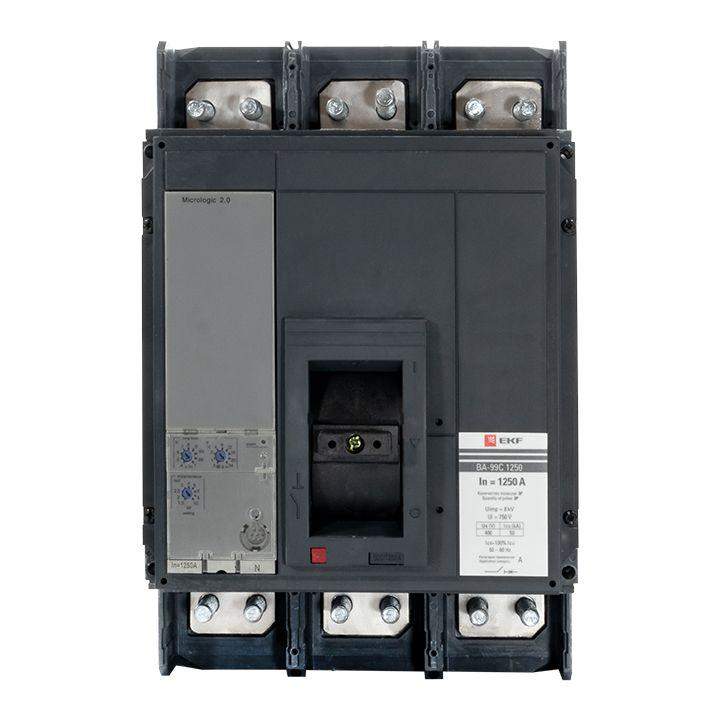 Выключатель ВА-99С выполнен в виде моноблока и состоит из основания и крышки с фальш-панелью, в которой имеется окно для рукоятки управления и толкатель кнопки «Тест» – для проверки механизма отключения выключателя.Основание выполнено из термостойкой пластмассы, не поддерживающей горение и являющейся несущей конструкцией для присоединительных зажимов, блок ротоактивных контактов с двумя дугогасительными камерами представляет собой жесткую сборку в отдельном корпусе, механизма управления, блока защиты от сверхтоков и перегрузки (расцепителя). Крышка закрывает все подвижные элементы механизма управления и внутренние токоведущие части.