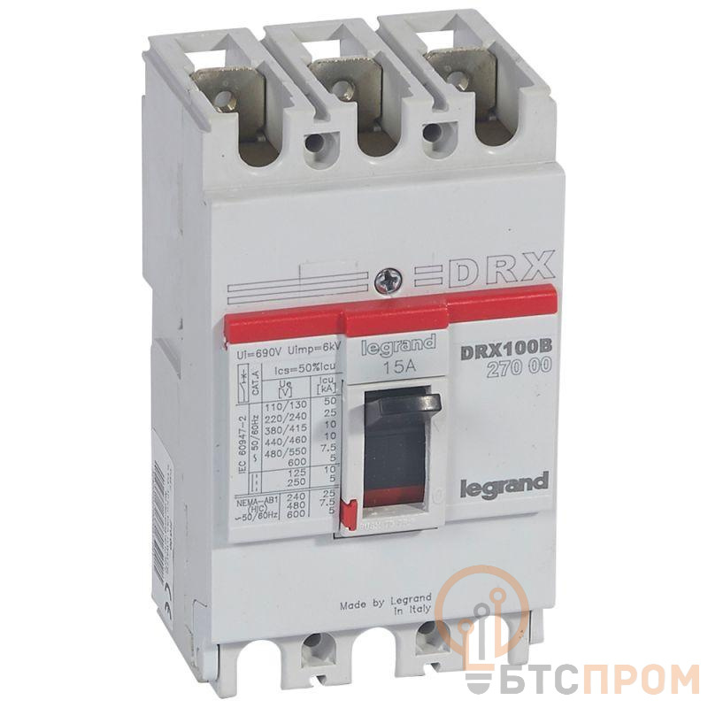 Автоматический выключатель DRX125 3P 15А от Legrand – это надежный трехполюсный аппарат, предназначенный для защиты электрических цепей от токов перегрузки и короткого замыкания в низковольтных сетях.