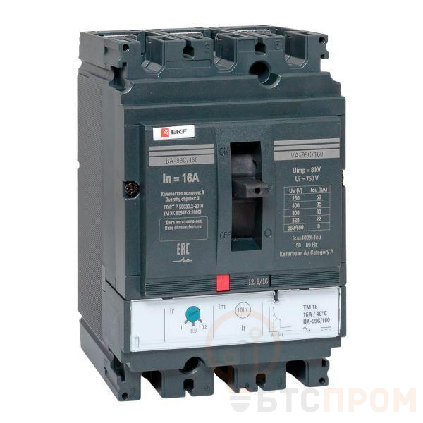 Выключатель ВА-99С выполнен в виде моноблока и состоит из основания и крышки с фальш-панелью, в которой имеется окно для рукоятки управления и толкатель кнопки «Тест» – для проверки механизма отключения выключателя.Основание выполнено из термостойкой пластмассы, не поддерживающей горение и являющейся несущей конструкцией для присоединительных зажимов, блок ротоактивных контактов с двумя дугогасительными камерами представляет собой жесткую сборку в отдельном корпусе, механизма управления, блока защиты от сверхтоков и перегрузки (расцепителя). Крышка закрывает все подвижные элементы механизма управления и внутренние токоведущие части.